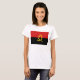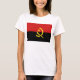 Die Vorderseite dieses T - Shirt zeigt mutig die angolanische Fahne mit ihrem markanten gelben Motiv über den roten und schwarzen Bändern. Hinter dem Bild befindet sich eine attraktive Landkarte von Angola.