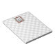 5,5" x 6" Notizblock mit einem Bild eines grauen und weißen Schachbrettes und einem Vintagen Schwarzweiß-Alice im Wunderland-Bild von Alice, das von den Karten in einem schwarz-weißen Schachbrett-Rahmen auf einem Hintergrund von Spielkarten auf rot angegriffen wird. Siehe die gesamte Wonderland Notepad-Auflistung in den SONDEREN TOUCHS. | Abschnitt Gastgeschenke.