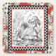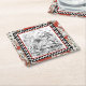 Set von 6 WegwerfUntersetzer des quadratischen Massenbrettes mit einem Vintagen Schwarzweiss-Alice im Wunderlandbild von Alice unter Angriff durch die Karten in einem Schwarzweiss-Schachbrettrahmen auf einem Hintergrund der Spielkarten auf Rot. See PlastikUntersetzer- und Papiercocktailserviette zusammenbringend. Sehen Sie die gesamte Märchenland-Untersetzersammlung im FOOD/BEV | Untersetzerabschnitt.