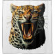 Fierce Powerful Leopard Roaring Attacke Portrait mit langen Reißzähnen nah. Original Vektorgrafik abgeschieden auf weißem Copyright BluedarkArt TheChameleonArt.