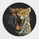 Fierce Powerful Leopard Roaring Attacke Portrait mit langen Reißzähnen nah. Original Vektorgrafik abgeschieden auf weißem Copyright BluedarkArt TheChameleonArt.