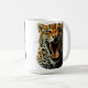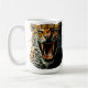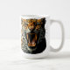 Fierce Powerful Leopard Roaring Attacke Portrait mit langen Reißzähnen nah. Original Vektorgrafik abgeschieden auf weißem Copyright BluedarkArt TheChameleonArt.