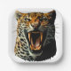 Fierce Powerful Leopard Roaring Attacke Portrait mit langen Reißzähnen nah. Original Vektorgrafik abgeschieden auf weißem Copyright BluedarkArt TheChameleonArt.