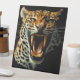 Fierce Powerful Leopard Roaring Attacke Portrait mit langen Reißzähnen nah. Original Vektorgrafik abgeschieden auf weißem Copyright BluedarkArt TheChameleonArt.