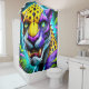 Dieser Duschvorhang hat eine wütende Katze darauf.