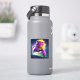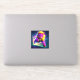 Dieser Aufkleber hat einen wütenden lila Löwen darauf.