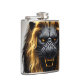 Dieser Kolben hat einen wütenden Löwen darauf.
