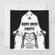 Vorderseite: Ein sehr beängstigendes, wütendes Skelett mit einem Hut Rücken: Ein offener, schwarzer Vorhang mit drei Spinnen und eine Fledermaus präsentiert das Knochen-Bash-Party - Hier sind zwei beängstigende Skelette, die sich auf ein paar herzförmige Skeletthand konzentrieren, die das Datum & Uhrzeit festhalten. "Bone Bash Party" "Zeit & Datum" "Ort"