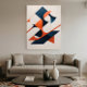 Geometric forms dance in balance between vibrant orange and deep blue. A bold composition that evokes rhythm, motion, and architectural precision.