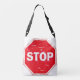 Kreuzen Sie die Tasche mit dem Bild von Stopp-Schild auf der Rückseite und Go-Schild auf der Vorderseite, in den Farben Rot, Grün und Weiß.