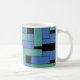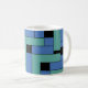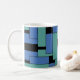 Anhang Kaffeetassen und Steine. Anhang ist ein abstraktes Design von Vexenwraith und besteht aus türkisfarbenen und blauen Blöcken auf schwarzem Hintergrund.
