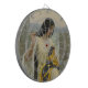 Dieses Design zeigt ein Gemälde von Edmund Blair Leighton (1852-1922), der ein englischer Maler historischer Genreszenen war; er spezialisierte sich auf Regency und mittelalterliche Fächer. Es zeigt eine wunderschöne Frau, die sorgfältig eine traditionelle europäische Fahne stickt; sie sitzt auf den Zierleisten eines Steinschlosses. In der Ferne kann man einen hohen Turm sehen. Es ist ein romantisiertes Bild des historischen Lebens. Das Originalgemälde wurde 1911 hergestellt.