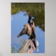 Dieser Anhinga trocknete seine Federn in der Morgensonne. Das Anhinga ist ein Süd-Sümpfe-Vogel, bekannt als das Wasser-Türkei für seine Schwimmgewohnheiten und seinen breiten Schwanz, und auch als der Snake-Bird für seine Gewohnheit, mit nur seinem langen Kopf und Nacken aus dem Wasser zu schwimmen.