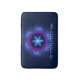 Die in Rosa und Blau gehaltenen David-Stars aus dem Fraktal auf einem dunklen Hintergrund mit hebräischem Text, der "Ani L'Dodi V'Dodi Li" (ich bin mein Geliebter und mein Geliebter ist meins) liest.