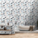 This delightful peel and stick wallpaper features a playful scene showcasing a lion, a tiger, and an elephant with a speech bubble reading “Hello,” all joyfully riding in a train on a curvy train track. The backdrop is adorned with charming elements of nature, including trees, mountains, and rainbows, creating a vibrant and imaginative atmosphere. The color palette includes shades of blue, gray, black, peach, and white, making it particularly well-suited for a boy's nursery, bedroom, or playroom.