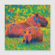 Farbiges grafisches Portrait einer Capybara-Mama mit ihrem Baby