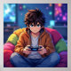 Poster für einen Jungen, der gerne Videospiele spielt. Ideal für Jugendliche und Jugendliche. Anime-Junge spielt Videospiele mit einem ernstzunehmenden Look.
