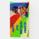 Personalisiertes Geburtstagsjunge Papier Banner für eine Pizza Geburtstagsparty eines Jungen. Niedlicher Anime-Junge, der ein Stück Pizza mit einem farbenfrohen Pop-Kunsthintergrund hält.