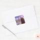 Anime City Girl Day Dream mit Blick auf Skyline Quadratischer Aufkleber