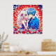 Niedliches Anime-Paar umgeben von bunten Blume. Die Farbtöne sind rot, weiß und blau, einige lila und rosa. . Niedlich zum Valentinstag, zum Jubiläum oder zu einem romantischen Anlass.