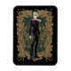 Diese animierte Grafik vereint exquisit Draco Malfoy, eine komplexe Figur aus der Harry Potter Serie, in einem Augenblick kontemplativer Eleganz. Set vor dunkelgrünem Hintergrund mit verzierten goldenen Blumenmustern. Draco ist gediegen und überzeugt. Sein platinblondes Haar und sein scharfer Blick vermitteln sein aristokratisches Verhalten und innere Unruhen. Das komplizierte Tattoo des Dunklen Markts auf seinem Arm weist auf seine tieferen Schichten und die persönliche Evolution hin, die er während der ganzen Serie durchläuft. Dieses Porträt verbindet traditionelles Zauberkunstwerk mit einer modernen Drehung, die die Mischung von Alt und Neu in Dracos Charakterbogen widerspiegelt.