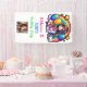 Ein niedliches Anime-Mädchen, das Ballons mit einem farbenfrohen Regenbogen im Rücken hält. Farbenfrohe hübsche personalisierte Geburtstagsbanner mit Foto für die Geburtstagsfeier eines Mädchens. Dieses Thema wäre niedlich für jüngere Kinder oder Jugendliche.