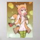 Pocky Fox Dieses Kunstwerk enthält ein niedliches, rosa haariges Anime-Mädchen, das als Fuchs gespielt wird. Sie trägt ein pinkfarbenes Kleider und hellgrüne Strumpfhosen mit einer Onigiri-Handtasche auf ihrem angesagten. Sie stöhnt auf Schokoladentasche und ist bezaubernd. Ihre Färbung wird locker von Decora inspiriert, einer Art japanischer Straßenmode, die in Harajuku beliebt ist.