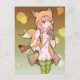Dieses Kunstwerk enthält ein niedliches, rosa haariges Anime-Mädchen, das als Fuchs cosplay fungiert. Sie trägt ein pinkfarbenes Kleider und hellgrüne Strumpfhosen mit einer Onigiri-Handtasche auf ihrem angesagten. Sie stöhnt auf Schokoladentasche und ist bezaubernd.