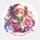 Anime Girl in Weihnachtsmannmütze Wasserfarben Wei Runder Aufkleber