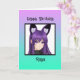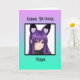 Niedliches lila und schwarzes animiertes Mädchen mit Fuchsohren personalisierte Geburtstagskarte mit Farbseite auf der Innenseite.