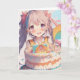 Anime Girl mit Geburtstagskuchen und Farbseiten Karte