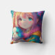 Schönes Anime-Mädchen mit zwei verschiedenen farbigen Augen, die einen bezaubernden Welpen halten. Niedliche und farbenfrohe Kinderkünstlerin. Generatviekonzent