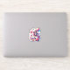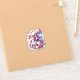 Ein niedliches Anime-Mädchen auf einem Einhorn mit Regenbogen, Schmetterlingen, Blume und Ballons in Rosa, Blau und lila Geburtstagsparty-Aufklebern. Lila, rosa und blau.