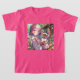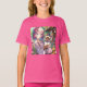 Ein hübsches, blaues, mit Augen Anime-Mädchen, das eine hübsche, mit Augen Siamkatze hält, umgeben von Blume.