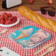 Geburtstagsparty Papier Teller. Hübsche lila und rosa Eis Kegel Anime Gürtel whimsical Kunst in lila, rosa, blau und gelb.