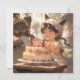 Geburtstagskunst im Whimsikstil mit einem lächelnden Kind und Kuchen, ideal für Party Einladungen, Dekorationen oder Geschenke. Dieses charmante und spielerische Design vereint die Freude am Feiern in einem magischen, in Geschichtenbüchern inspirierten Stil.