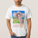 Der T - Shirt ist weiß mit einem grafischen Druck auf der Vorderseite. Der Druck zeigt eine Animfigur, eine weibliche Figur mit lila Haar, stehend in einem Feld mit Blume. Unter dem Zeichen steht der Text "I LIEBE ANIME".