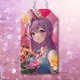Hübsche Animes zum Geburtstag von und von Geschenktags. Niedliche Grafik eines hübschen Anime-Mädchens mit lila Haaren, umgeben von Ballons und rosa und lila Blumen. Diese sind niedlich für ein Teenager- oder Jugendmädchen.