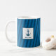 Mit dieser modernen marineblau gestreiften Ankernacht, die eine individuelle Kaffeemaschine für Sie bereithält, fügen Sie Ihre Zuhause-Küchendekoration mit einer nautischen Touch hinzu. Personalisieren Sie Ihre Familienname. Diese Tasse macht ein großartiges personalisiertes Brautparty, Hauswärmung, Hochzeit, Geburtstag, Weihnachten oder andere Feiertage Geschenk!