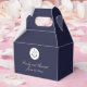 Nautic marineblau Anker monogramm Gastgeschenk Hochzeit Box mit Braut und Bräutigam Namen und Hochzeitstag. Navy Blau mit weißem Text.