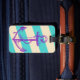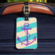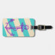 Dieses ist ein Gepäckumbau mit einem gestreiften Hintergrund und einem lila Anker
