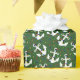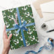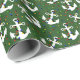 Fügen Sie Ihren Weihnachtsgeschenken eine nautische Touch mit diesem gemusterten Packpapier hinzu. Diese Geschenkpackung zeigt Abbildungen von Bootankern in weiß verpackt mit Weihnachtsbeleuchtung mit zusätzlichen Weihnachtsbeleuchtung Akzente vor einem grünen Hintergrund.