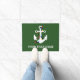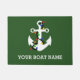 Diese Türmatte oder Begrüßungsmatte ist bereit, mit dem Namen eines Bootes oder mit jedem beliebigen Text personalisiert zu werden. Es zeigt eine handgezeichnete Abbildung eines weißen Schiffsankers mit bunten Weihnachtsbeleuchtung, die vor einem grünen Hintergrund um Set herum gewickelt ist. Das ist ideal, um dem Boot eine Touch zu geben oder ein personalisiertes Geschenk für die Bootsfahrer zu machen.