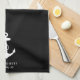 Schwarze Küchenhandtücher zum Thema Nautic mit weißer Abbildung eines klassischen Ankers und Name und Lage Ihres Bootes in einfacher und eleganter weißer Typografie.