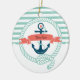 Spaß nautische Thema ist blau-weiß Anker mit Seilzirkel und Banner auf Aqua Hintergrund. Korallenbannerakzente und dunkelblaue Rickrackverkleidung. Passen Sie den Vor- und Rücktext an, oder löschen Sie den Text, wenn Sie ihn lieber ohne haben möchten.