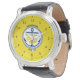 Watchwith city of Anchorage, Alaska; gelbe Fahne mit weißem Siegel mit einer Abbildung eines blauen Schiffes und Ankeres