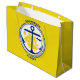 Große Geschenktasche mit der Stadt Anchorage, Alaska; gelbe Flagge mit weißem Siegel mit einer Abbildung eines blauen Schiffes und Ankeres