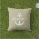 Nautisches Ankerkissen. Weißer, nautischer Anker mit individuellem Bootsnamen auf grünem, grauem Hintergrund. Modernes Ankerlogo kombiniert mit dem klassischen Bootname Serif Schriftart. Dieses nautische Kissen von Khaki ist eine großartige Dekorationsidee für elegante Sitzecken im Freien und eine schöne Geschenkidee für sie und ihn, Bootsfahrer und Segler. Terrasse Dekoration Ideen aus der Liebe des Ozeans. #ybeedesign #ybeesea #anchorpillowsnautical #boatpillows #olivegreenpillow #khakipillow © Design y.BEE SEE