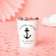 Moderne nautische Papiertassen für Ihr Boot, die eine Abbildung eines schwarzen Ankeres und "Welcome Bard" sowie den Namen und die Lage Ihres Bootes in eleganter Typografie und Schrift enthalten.
