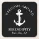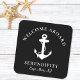 Die schicken und modernen nautischen Untersetzer für die Gäste Ihres Bootes, die eine weiße Abbildung eines Ankeres auf schwarzem Hintergrund zeigen. Personalisieren Sie den Text "Welcome Bard" und den Namen und die Lage Ihres Bootes in eleganter weißer Typografie.